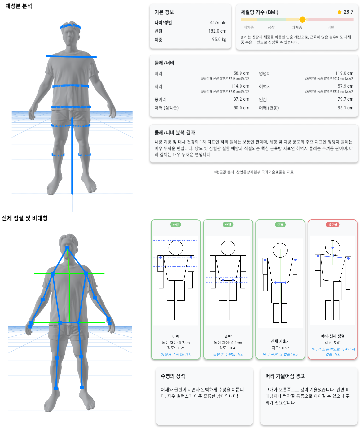 Posture, symmetry, key measurements, and before/after comparisons.