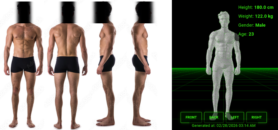Creates a visual body model from the photos.
